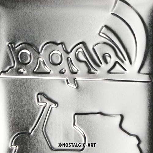 I materiali sono sinonimo di qualità le nostre targhe vintage si pongono come valida alternativa ai soliti poster o prodotti in plastica. Il fascino viene esaltato da immagini di alta qualità e dal rilievo dato dallo stampo stesso, il quale conferisce all‘immagine un effetto quasi tridimensionale. Le immagini appaiono particolarmente vive, luminose, e di grande impatto visivo.