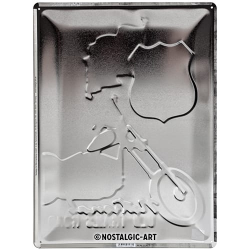 I materiali sono sinonimo di qualità le nostre targhe vintage si pongono come valida alternativa ai soliti poster o prodotti in plastica. Il fascino viene esaltato da immagini di alta qualità e dal rilievo dato dallo stampo stesso, il quale conferisce all‘immagine un effetto quasi tridimensionale. Le immagini appaiono particolarmente vive, luminose, e di grande impatto visivo.