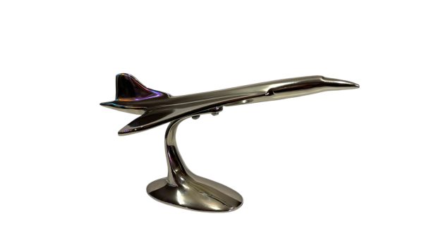 Superbo modello di Aeroplane Concorde, fuso a mano in alluminio riciclato con finitura nichelata lucida.