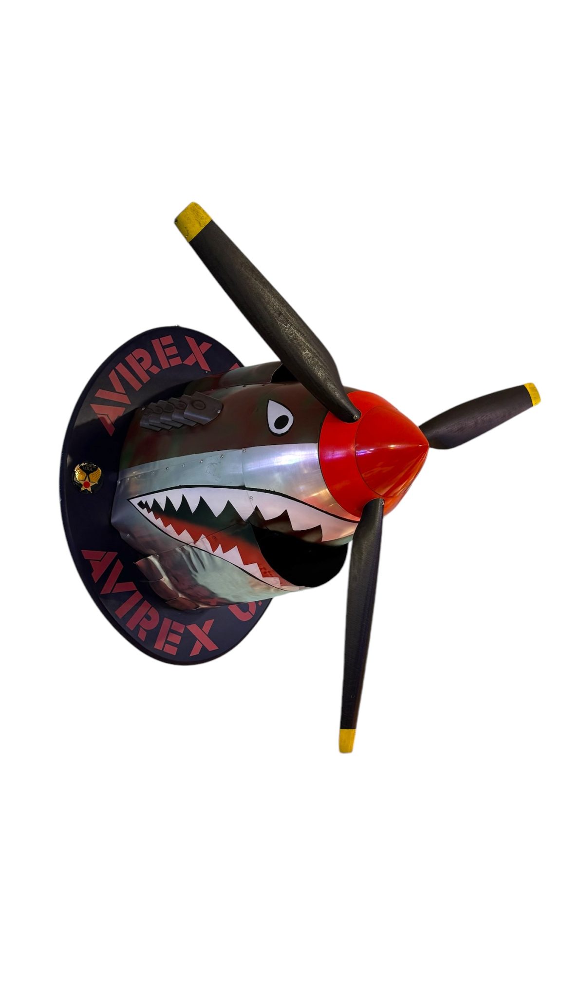 Fantastico Aeroplane Originale Avirex riproduzione della parte frontale del mitico aereo Americano P-40, questo oggetto proviene dagli store di Abbigliamento Avirex e veniva esposto come oggetto di vetrina. Ottimo per arredare qualsiasi angolo e dotato di gancio per appenderlo alla parete.