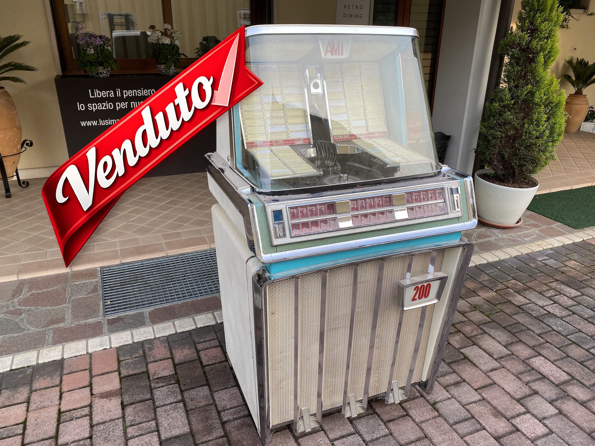 Questo Jukebox lo puoi acquistare anche già restaurato con il Restauro “Top Quality Restoration di Lusima“ il nostro lavoro di restauro prevede un lavoro di ripristino e di ricostruzione totale, sia di mobile che di meccanica e di amplificazione con la sostituzione di tutte le parti danneggiate: che siano valvole, plastiche o tasti, noi sostituiamo tutti i componenti guasti, rotti, o malmessi, per un risultato Super per i Clienti più esigenti………chi acquista un Jukebox restaurato da Lusima acquista il Top!