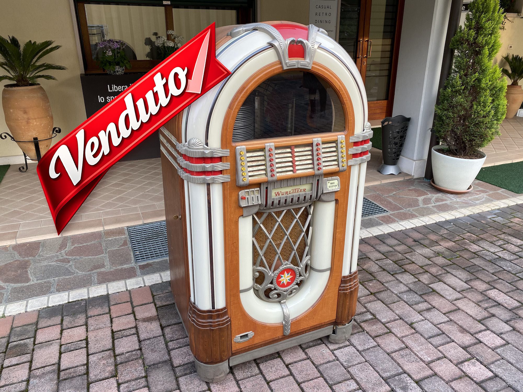 Fantastico e dai Mille colori, il Wurlitzer 1015 si pone ai vertici dei Juke box più belli mai costruiti, un Suono caldo e potente ricrea l’ atmosfera che si respirava all’ epoca, fu anche il primo ad essere dotato di un dispositivo che consentiva di ” ricordare ” le richieste degli utenti. il successo fu tale che in soli due anni di produzione ne furono venduti 56000 esemplari, e il nome Wurlitzer divenne sinonimo di Juke Box.