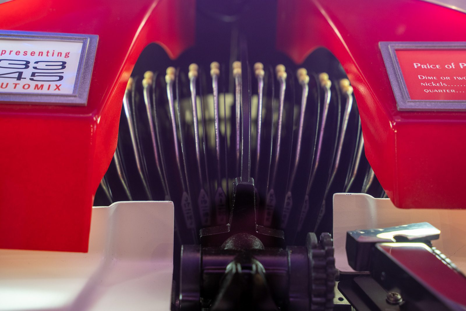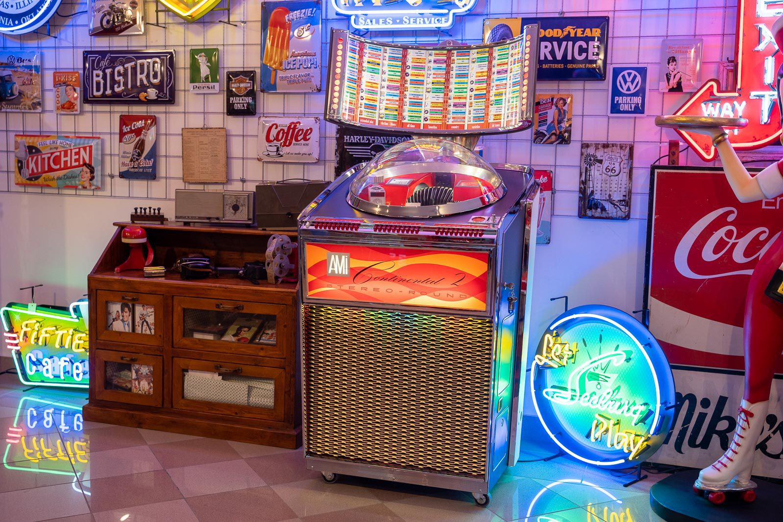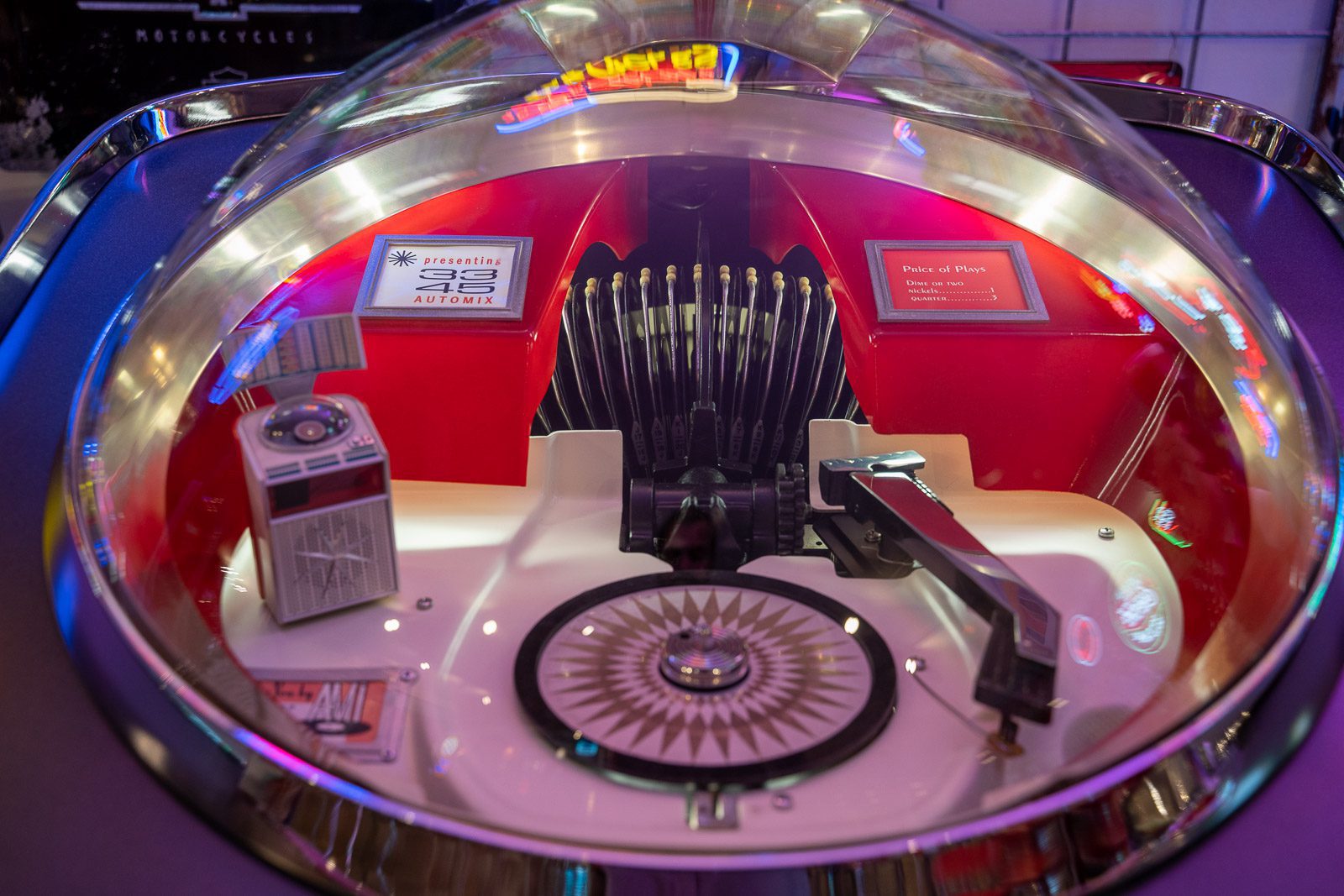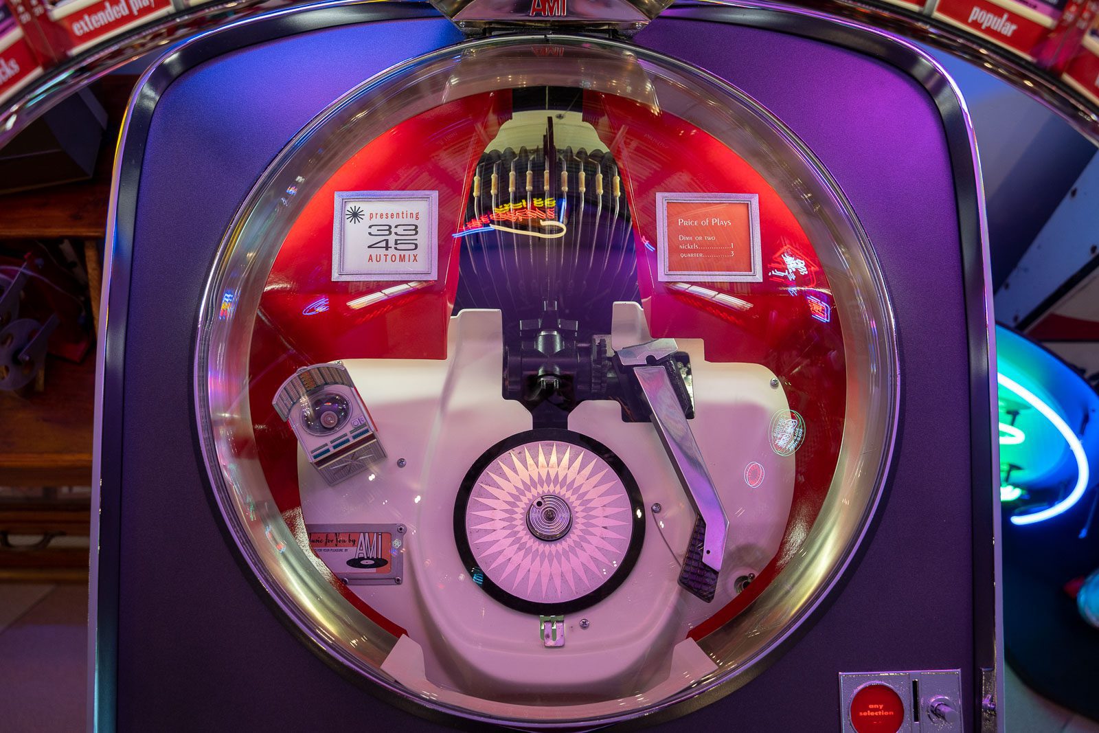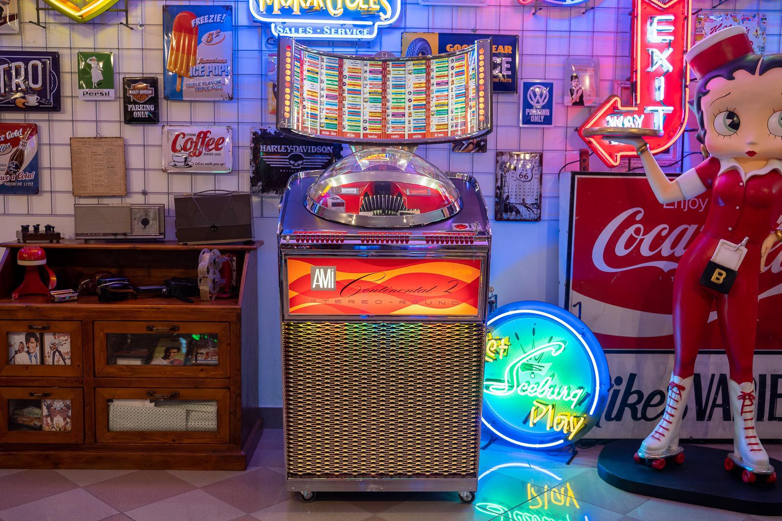 I nostri nonni se lo ricordano benissimo! Ami Continental 2 Jukebox è uno dei modelli più popolari degli anni 60 e del suo predecessore il Continental 1 manteneva forme e dettagli come la cartelliera dei titoli dei dischi che assomiglia all’antenna di un radar e la vetrina semisferica simile a un oblò spaziale. Il suo colore rosso accesso lo rende assolutamente più appariscente, viene tolta la stella sul frontale della rete, ma vengono aggiunti i fori sul radar dove spiccano le scritte “Stereo Round”, questo per evidenziare che il jukebox Ami Continental 2 era anche stereofonico.
