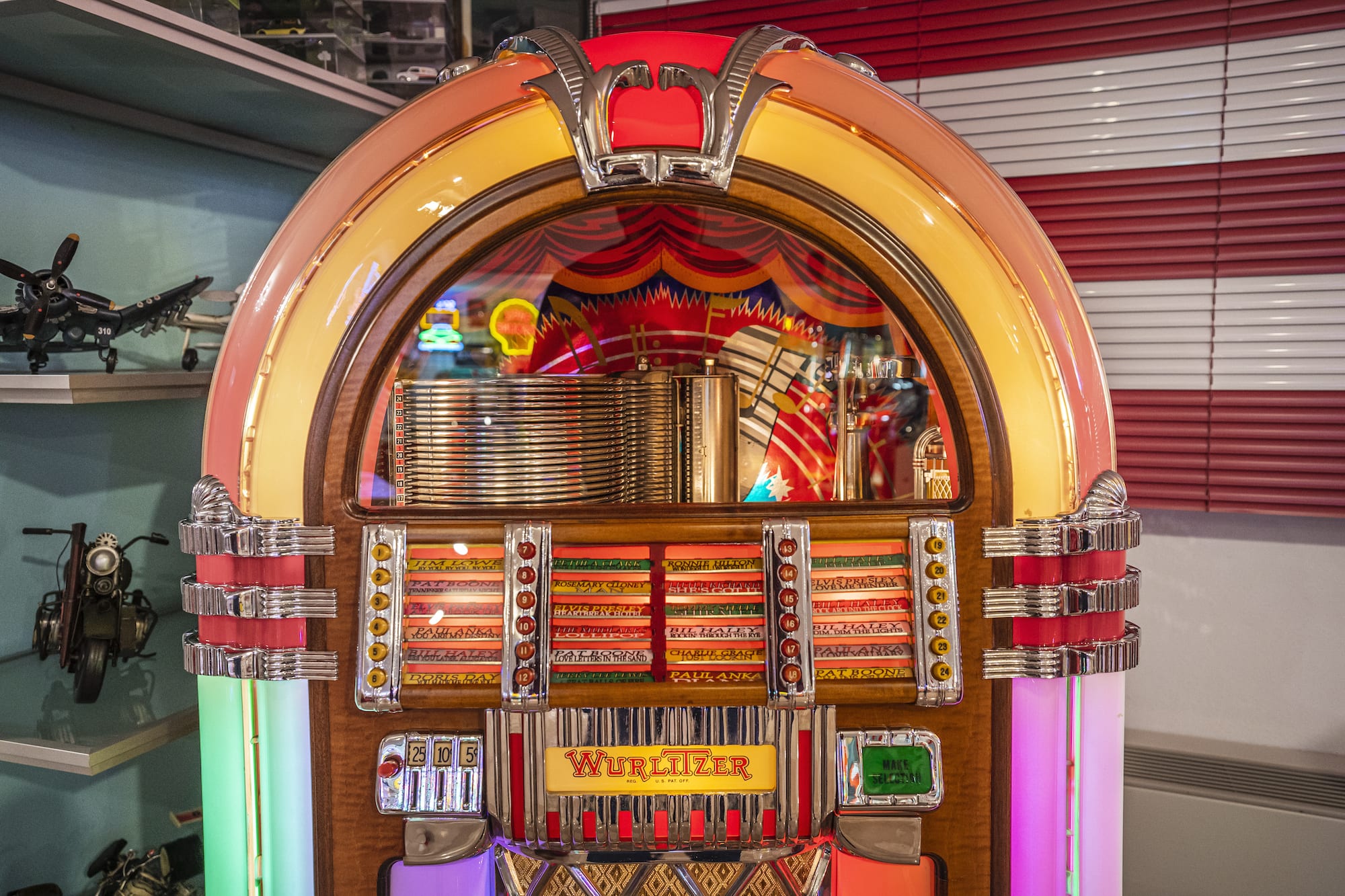 Fantastico e dai Mille colori, il Wurlitzer 1015 si pone ai vertici dei Juke box più belli mai costruiti, un Suono caldo e potente ricrea l’ atmosfera che si respirava all’ epoca, fu anche il primo ad essere dotato di un dispositivo che consentiva di ” ricordare ” le richieste degli utenti. il successo fu tale che in soli due anni di produzione ne furono venduti 56000 esemplari, e il nome Wurlitzer divenne sinonimo di Juke Box.