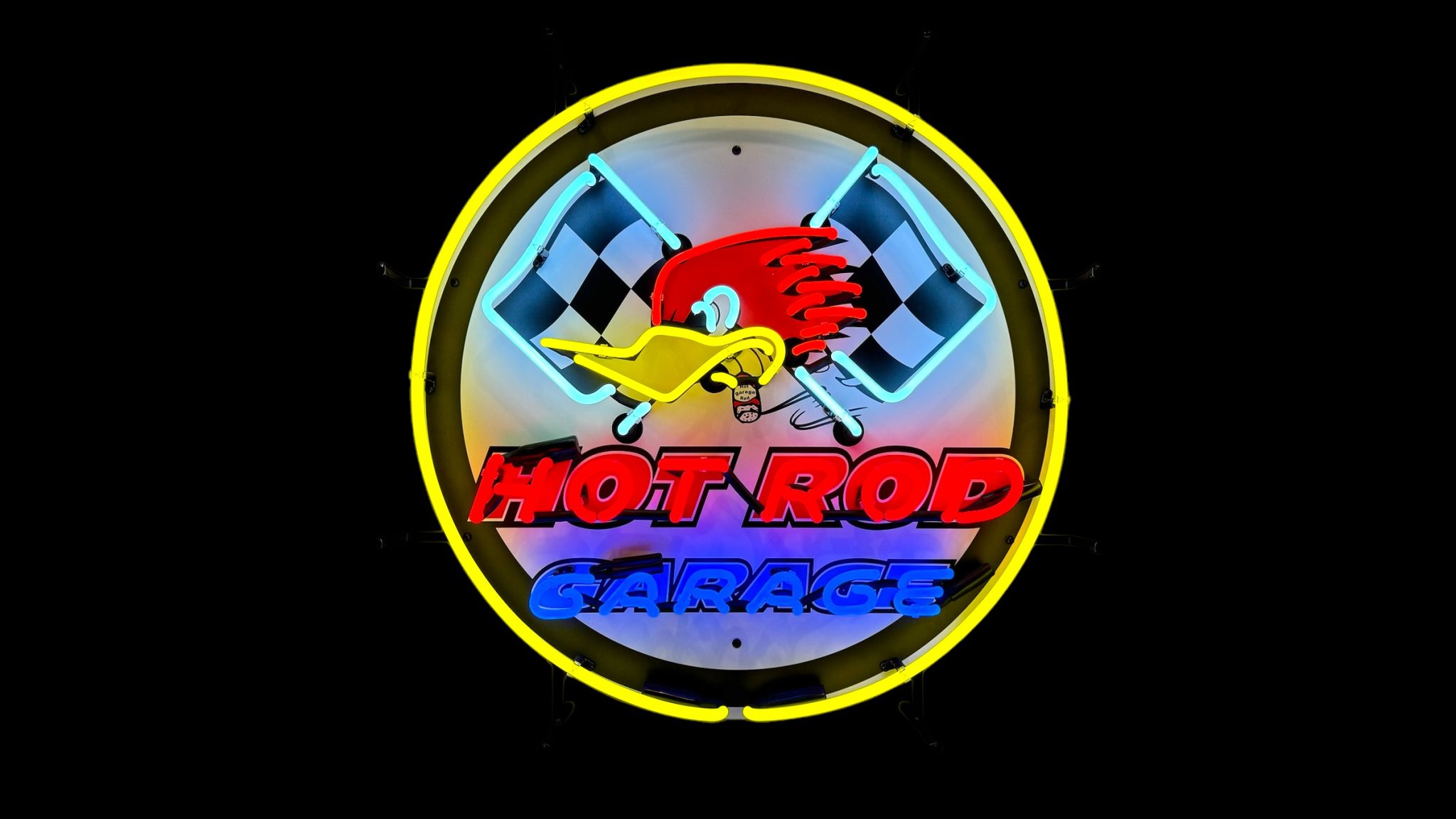 Insegna al Neon con tubo soffiato e lastra serigrafata sottostante ( ottimo effetto visivo anche da spento ), tutto montato su supporto metallico con piedini in gomma.