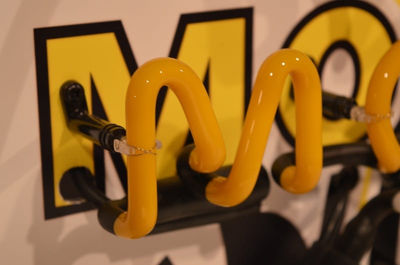 Insegna al Neon con tubo soffiato e lastra serigrafata sottostante ( ottimo effetto visivo anche da spento ), tutto montato su supporto metallico con piedini in gomma.