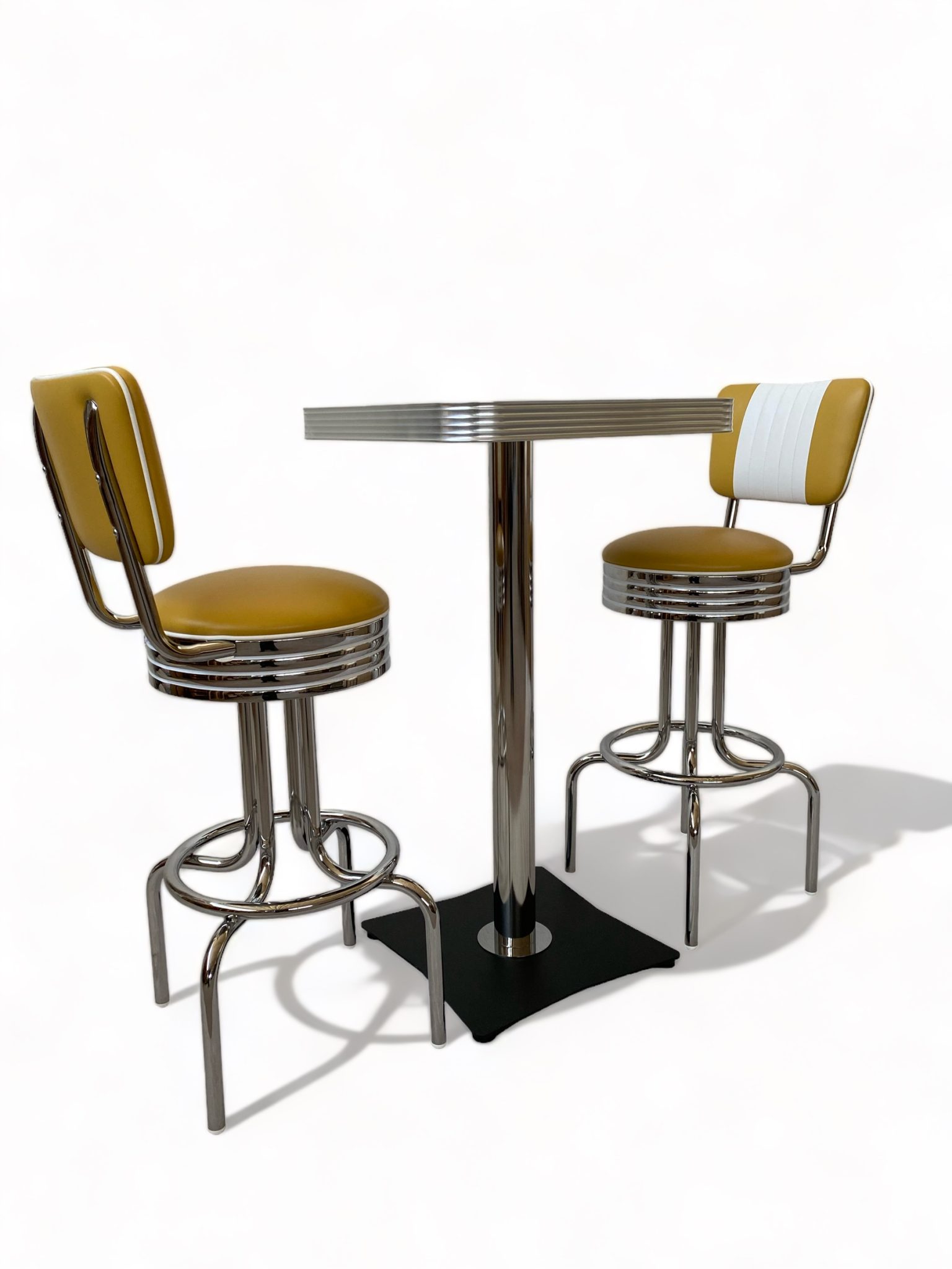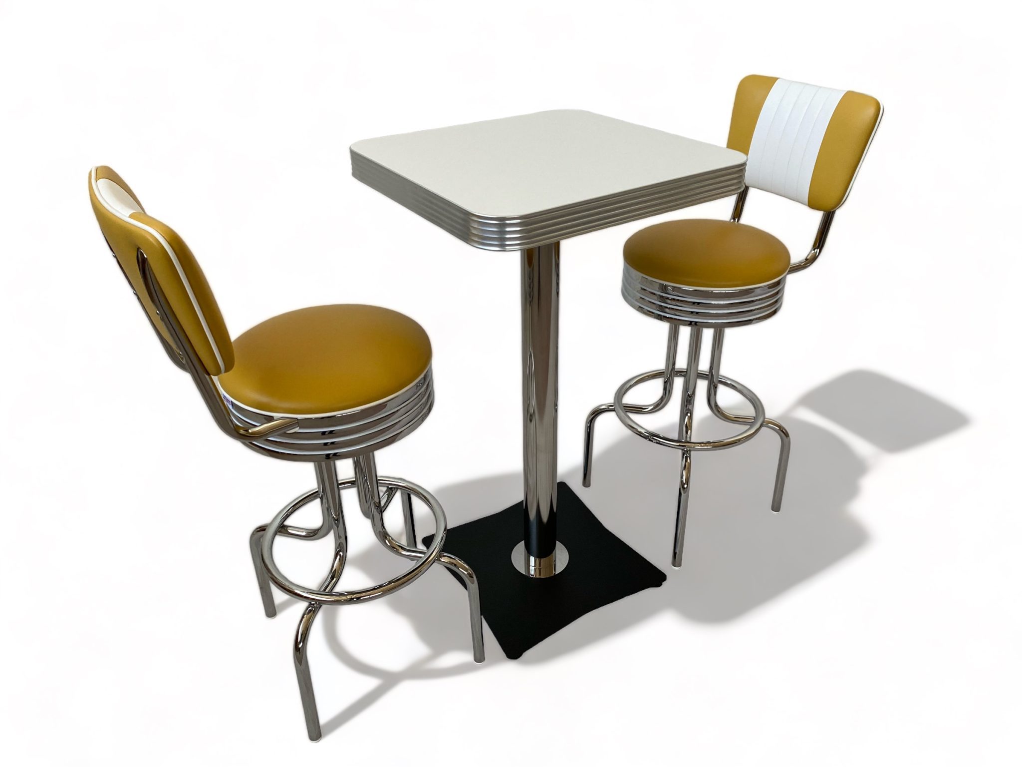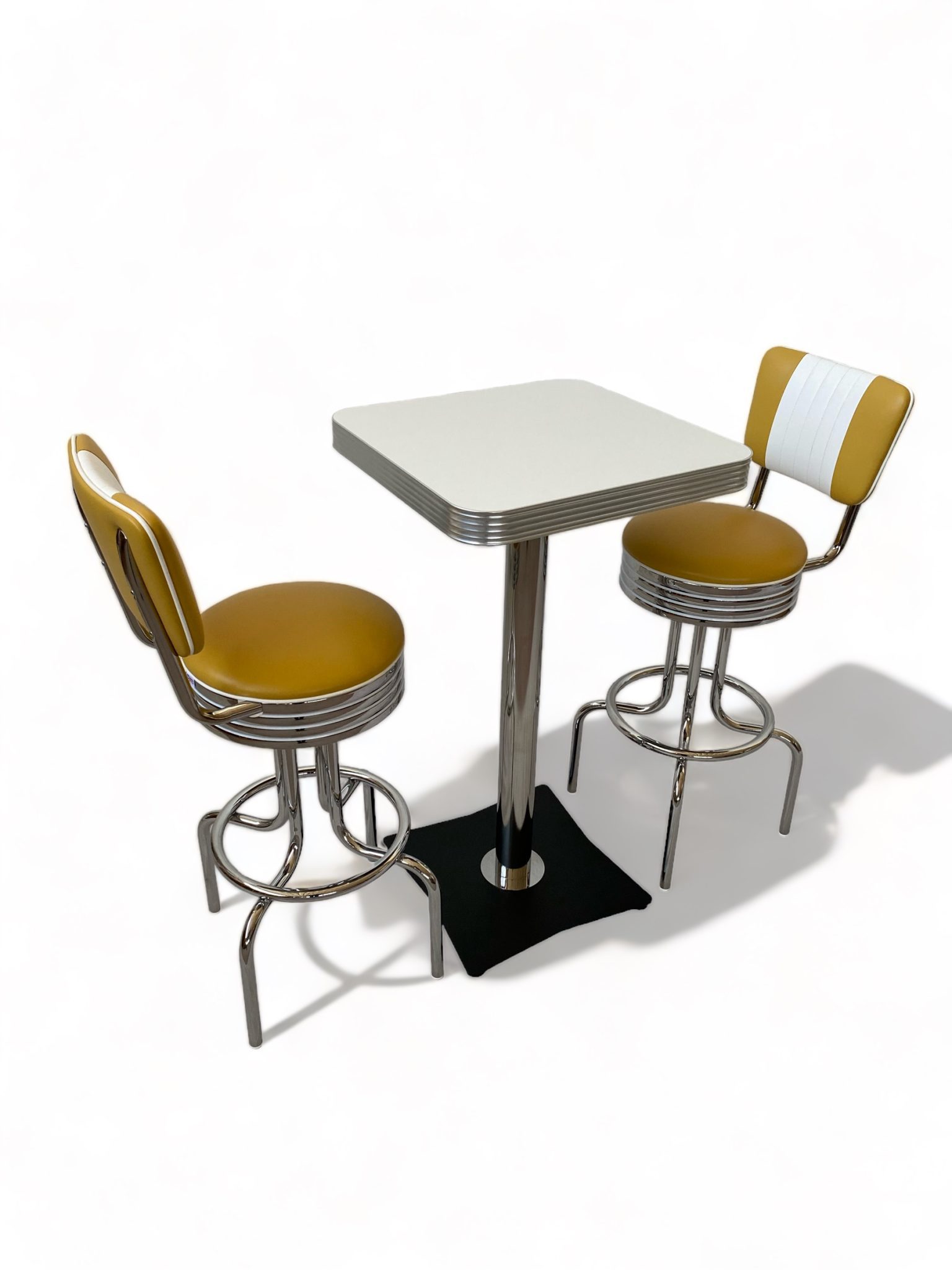 Set Tavolo Lancaster colore bianco misura 56 x 56cm. + 2 Sgabelli Portland di colore Mango, in condizioni pari al nuovo e usati solo per esposizione.