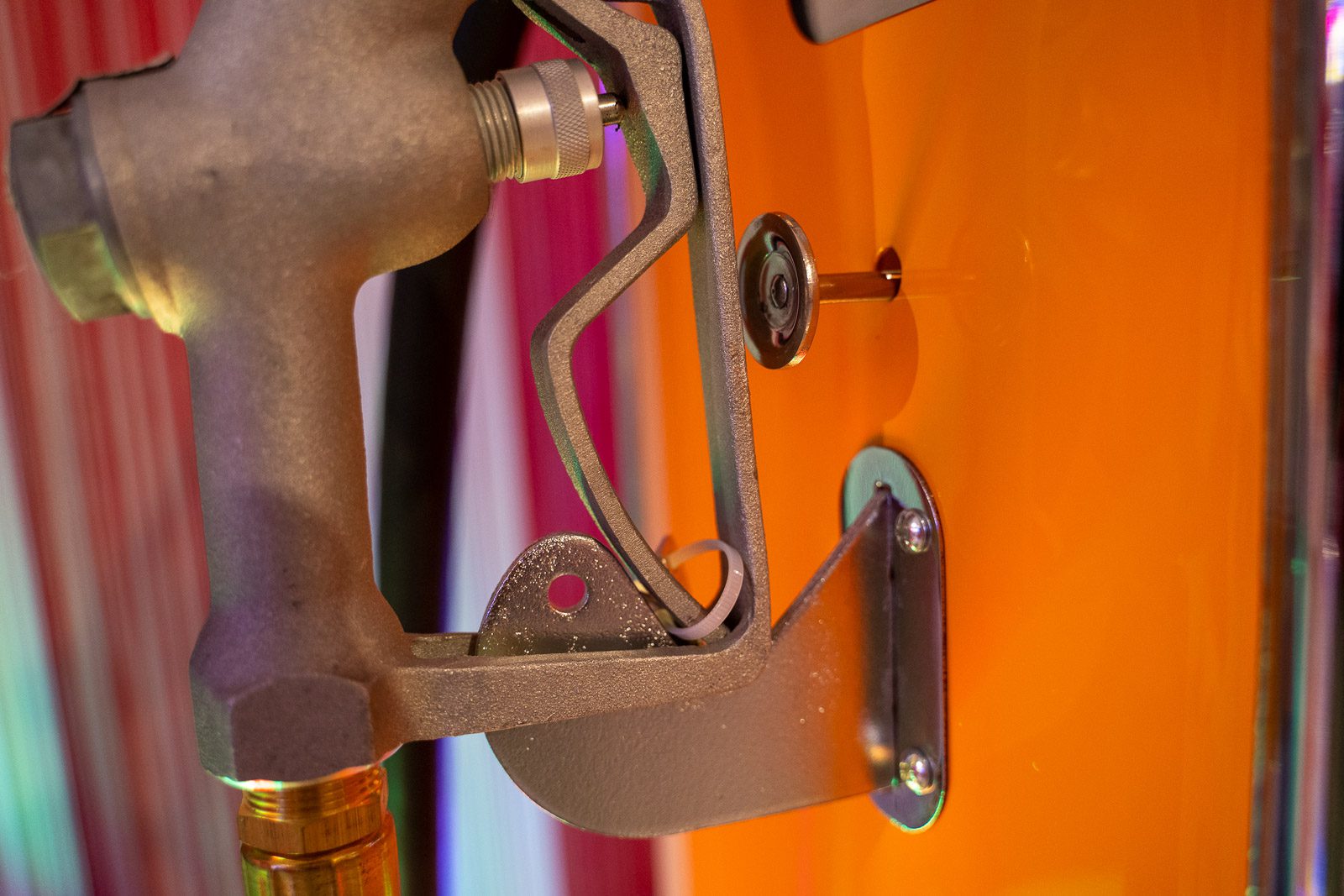 In questa pompa di Benzina, è stata rimossa la parte inferiore dei motori pompa per alleggerire il peso dell’oggetto stesso.