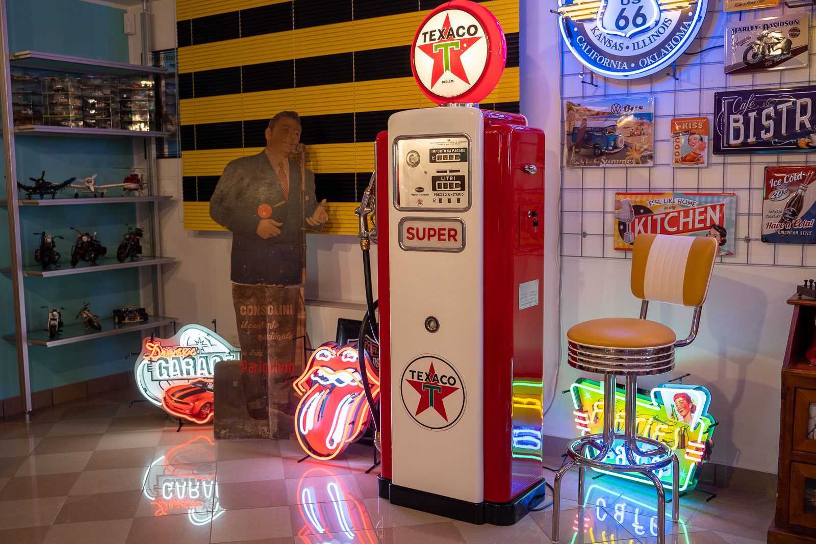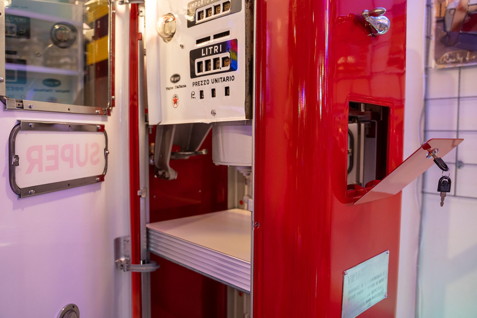 Il Restauro “Top Quality Restoration di Lusima” prevede un restauro completo e totale, la pompa viene rigorosamente smontata, eventuali buchi formati dalla ruggine vengono tappati con pezze di lamiera dal nostro esperto saldatore, in una fase successiva viene eseguito un processo di sabbiatura di tutta la parte interna del telaio di supporto e di tutti i lamierati. Tutti i pannelli vengono meticolosamente smontati e ripristinati. Due mani di fondo e vernice acrilica rendono la parte finitura ultra liscia e specchiata, Il globo viene sostituito con una copia fedele all’originale di un tempo, tutto il cablaggio elettrico viene fatto nuovo.