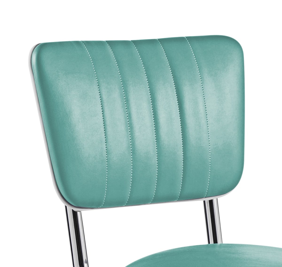 Cuciture a vista sullo schienale con effetto bombato verticale monocolore, bordini inferiori e superiori sulla seduta con manifattura artigianale di qualità.