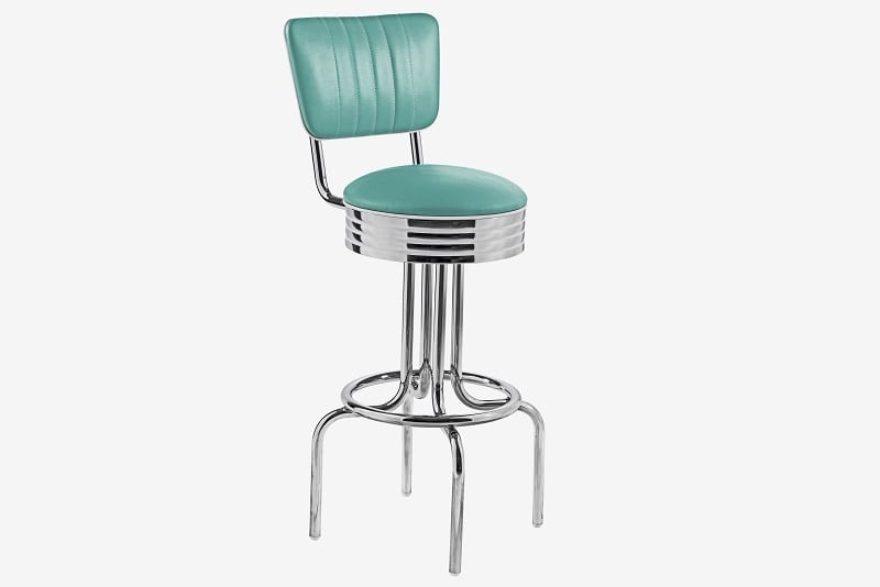Sgabello con telaio realizzato in tubo d’acciaio Diametro 25mm, Spessore 1.5, piegato e saldato con sistema robotico e cromato con sistema ecologico trivalente ( ottima duratura nel tempo ).