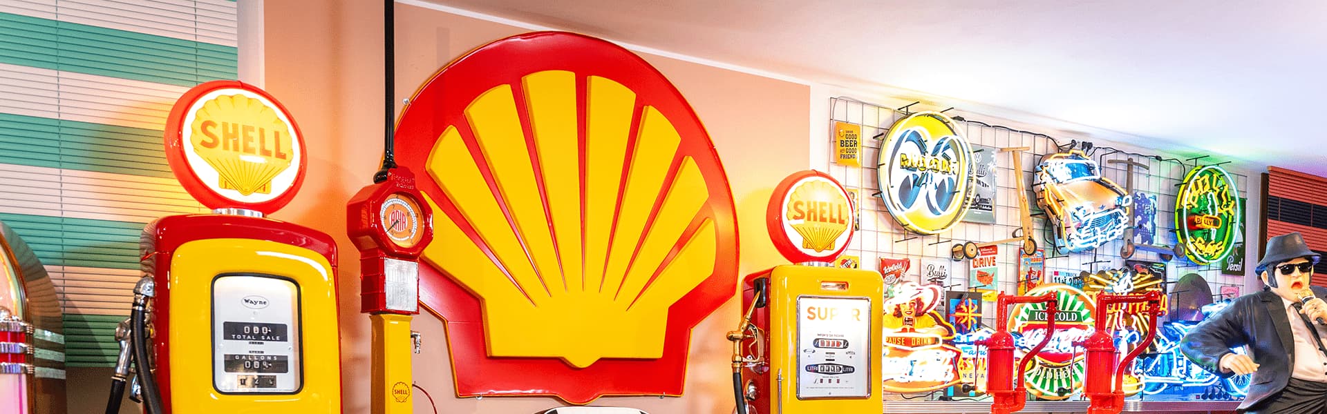 Spesso immortalate in numerosi film cult, le pompe di benzina vintage sono una delle tante icone degli anni ‘50 e ‘60 in America. Caratterizzate dai colori sgargianti e dai globi luminosi, aggiungono alla tua casa un simbolo di libertà e avventura, evocando l’atmosfera dei tempi d’oro dei viaggi on the road.