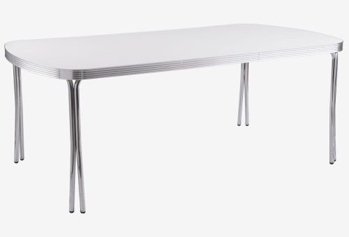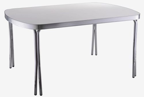 Per ricreare una perfetta atmosfera anni ’50, non possono mancare nella tua casa i tavoli americani dal sapore vintage, caratterizzati da strutture in acciaio o ricoperti in laminato, dalle forme circolari, ovali o con gli angoli arrotondati.