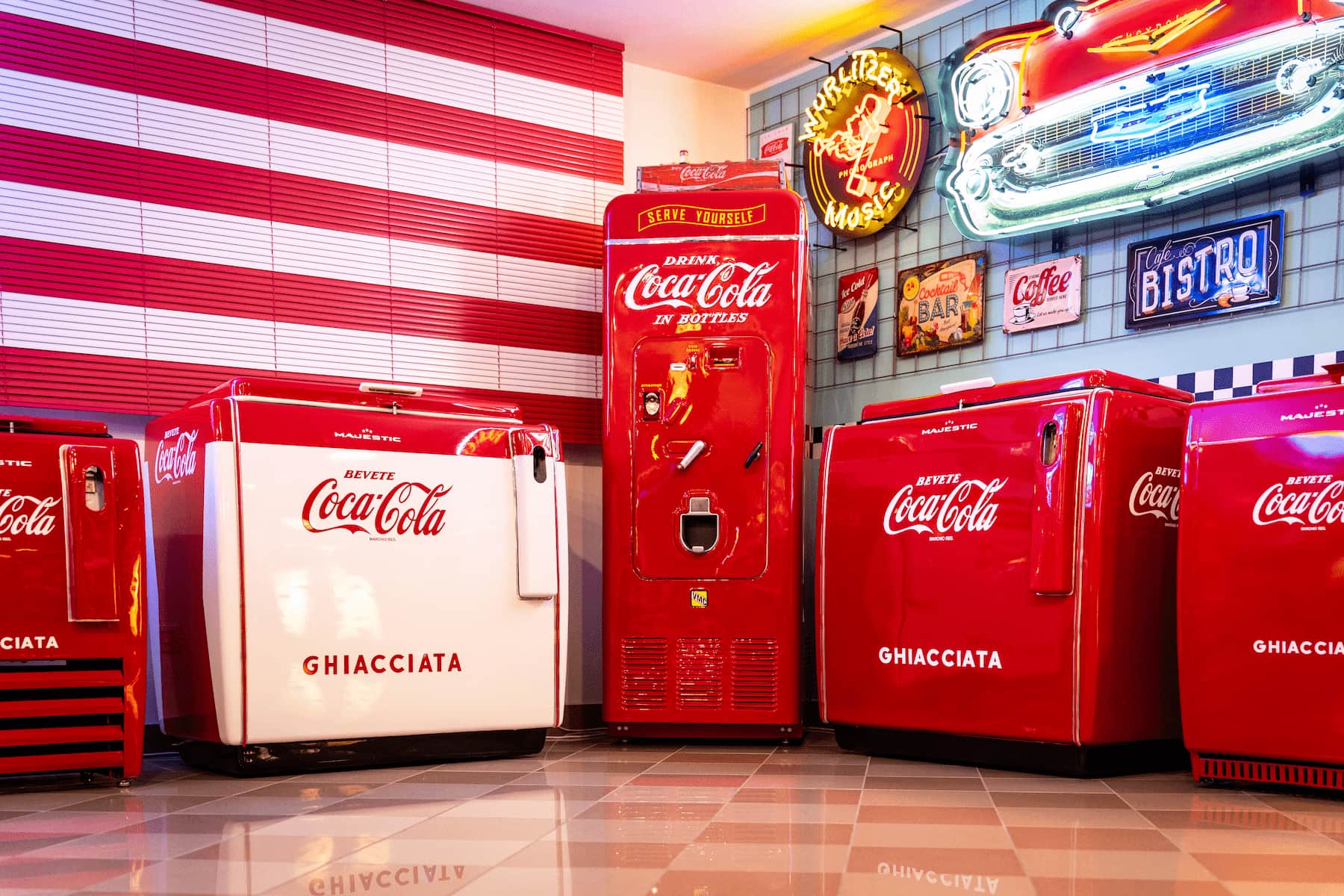 Da noi puoi trovare tutto l’arredamento che ti permetterà di dare un tocco storico e di vissuto al tuo ambiente. Da pezzi unici come i magnifici Jukebox, che restauriamo e rendiamo vere e proprie opere d’arte, ai Divanetti, Sedie, Sgabelli e Tavoli Vintage di produzione al cento per cento italiana.